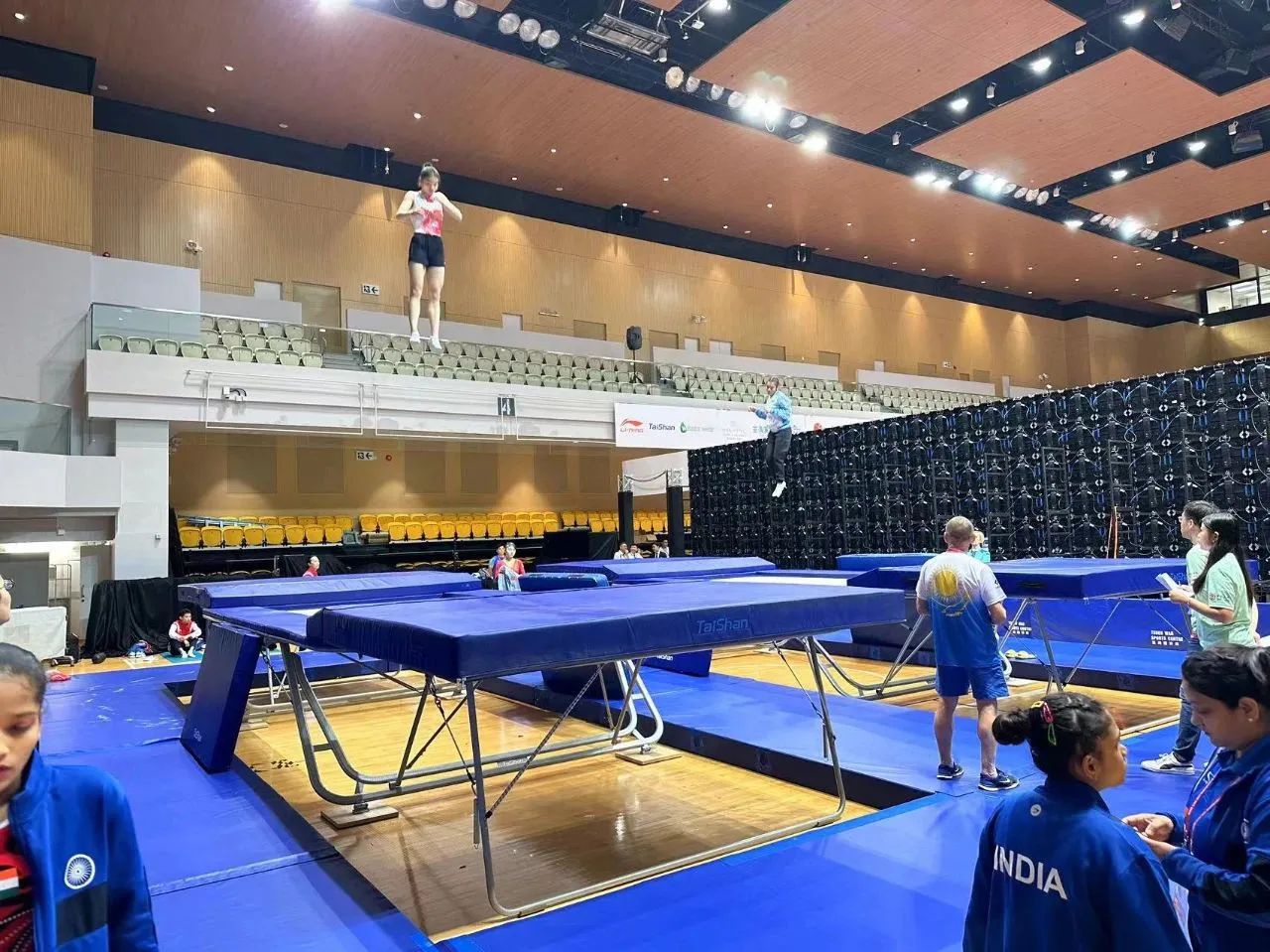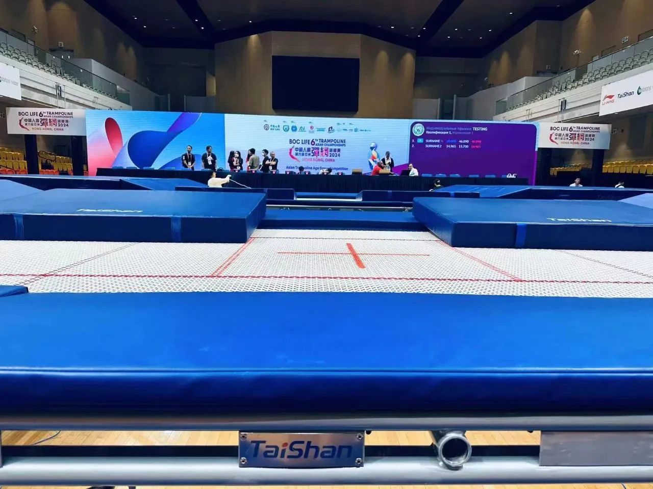 為服務好本屆蹦床錦標賽,星空·體育保障人員嚴格按照賽事服務手冊開展工作,從場館的規劃布局、器材的安裝調試、標準高度的校準、過程巡檢等各個環節,一絲不茍、嚴謹細致,確保蹦床器材安裝的準確無誤,始終踐行國際賽場上的中國標準,見證星空·體育全領域規劃、設計、制造、集成、運營、服務一站式解決方案的發展理念。