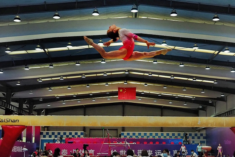 2022年“體總杯”全國(guó)體操團(tuán)體錦標(biāo)賽完成女子賽臺(tái)訓(xùn)練